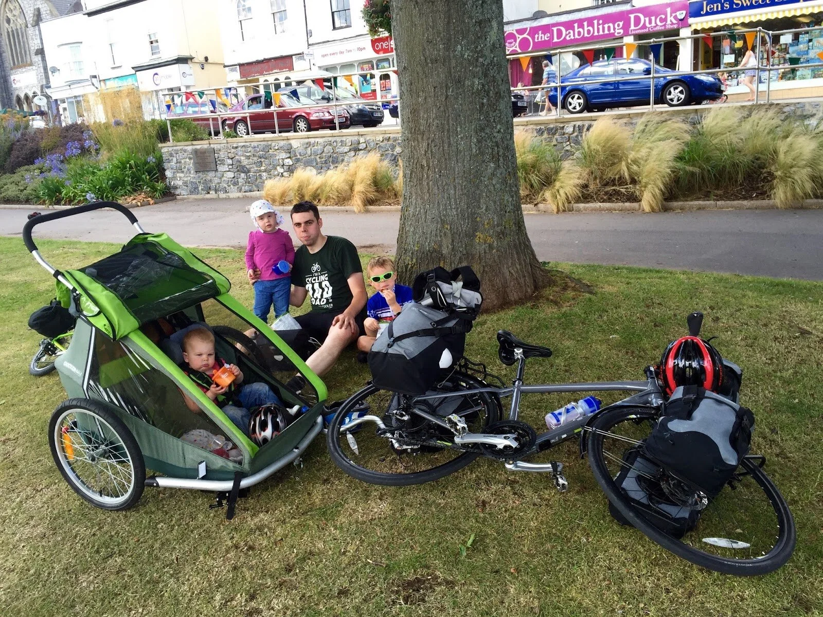 I do hope Toby hadn't been waiting long as we rolled into the appointed car park to find a 4x4 and a trailer big enough to take our entire outfit, with a friendly fellow cyclist at the wheel of the ensemble. A long evening's ride and a big hill had been averted thanks to the kindness of strangers. Toby, Nicky and their little boy John are another cycling family, with a wealth of experience on two wheels, and it's been affirming to meet likeminded people so early in our trip.