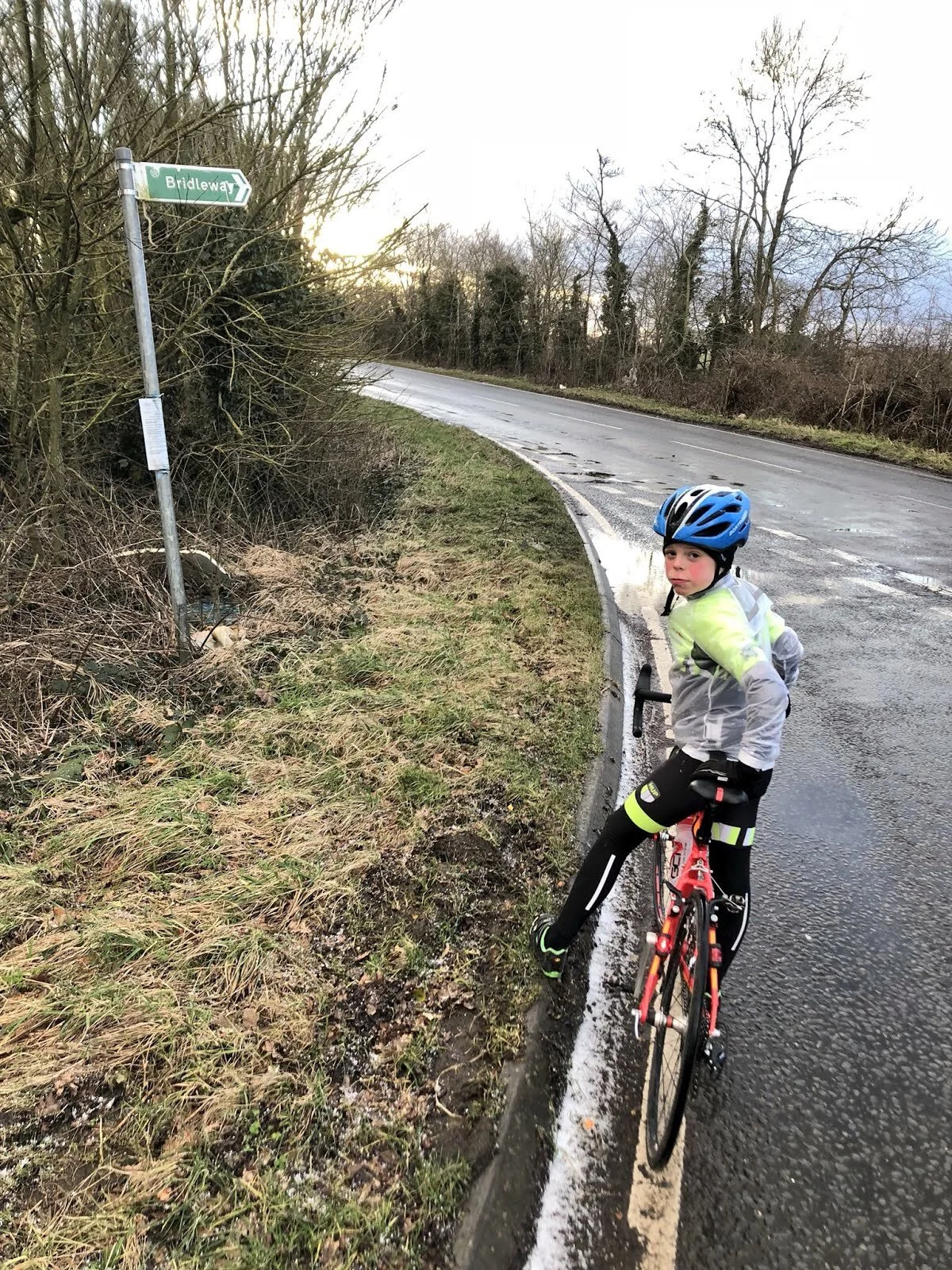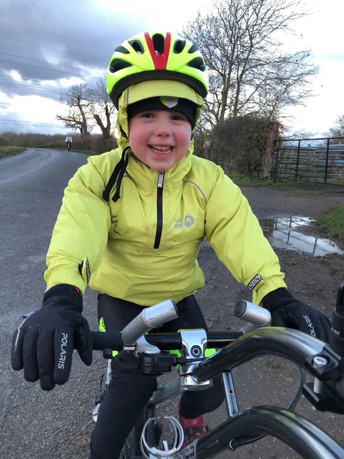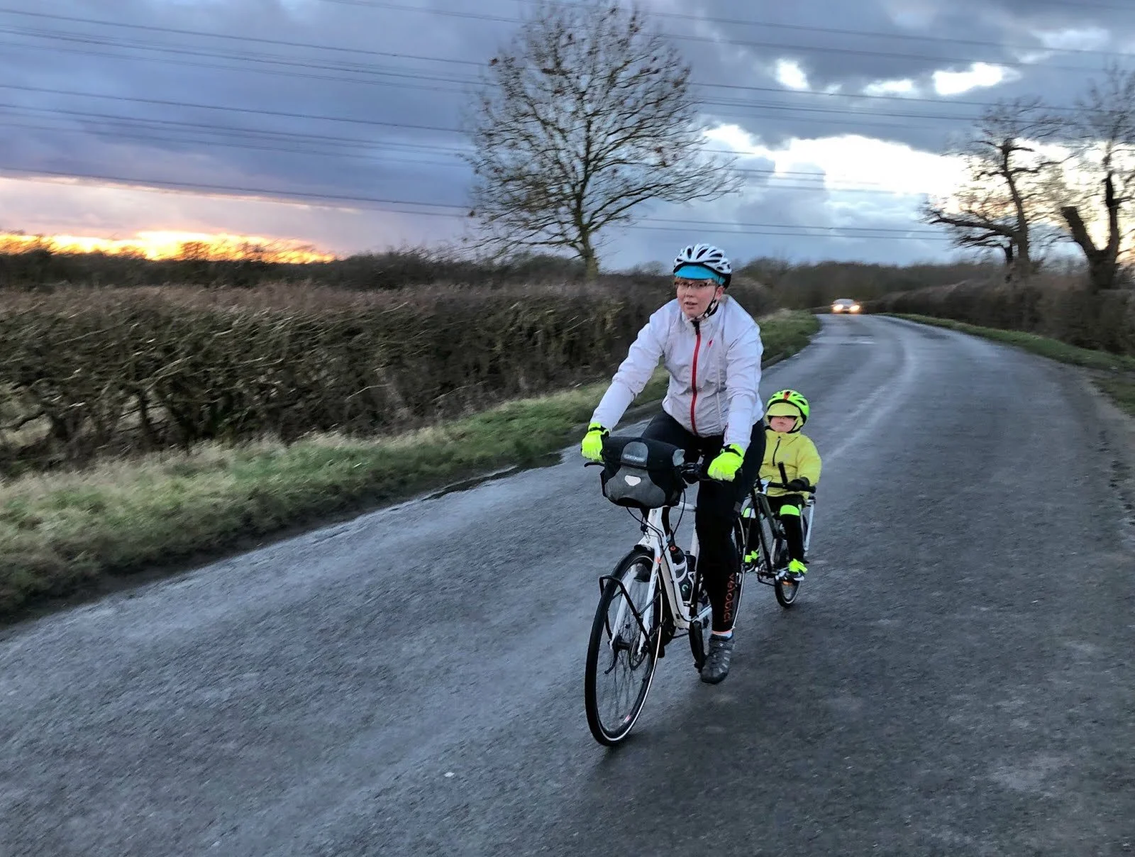 What is training for, if not a bit of conditioning?! A small dose of hail in the faces, endured by choice and survived, makes for better endurance next time it comes and can't be avoided. Use mitigations (being able to turn round and put the wind at your backs, and doing that before things get ugly) and rewards (hot chocolate and a warm bath at home afterwards) while you have them. If we encounter a full-on hailstorm again, in the middle of nowhere, the children know what to do, and that it will be ok. They won't die. It will still be a good adventure. We were well impressed with the girls' willingness to endure a burst of rough weather and keep going; Thomas Ivor was able to get used to the 'new' sensory input of cold stuff hitting his face whilst riding a road he knows well, and could process his response at his own pace.