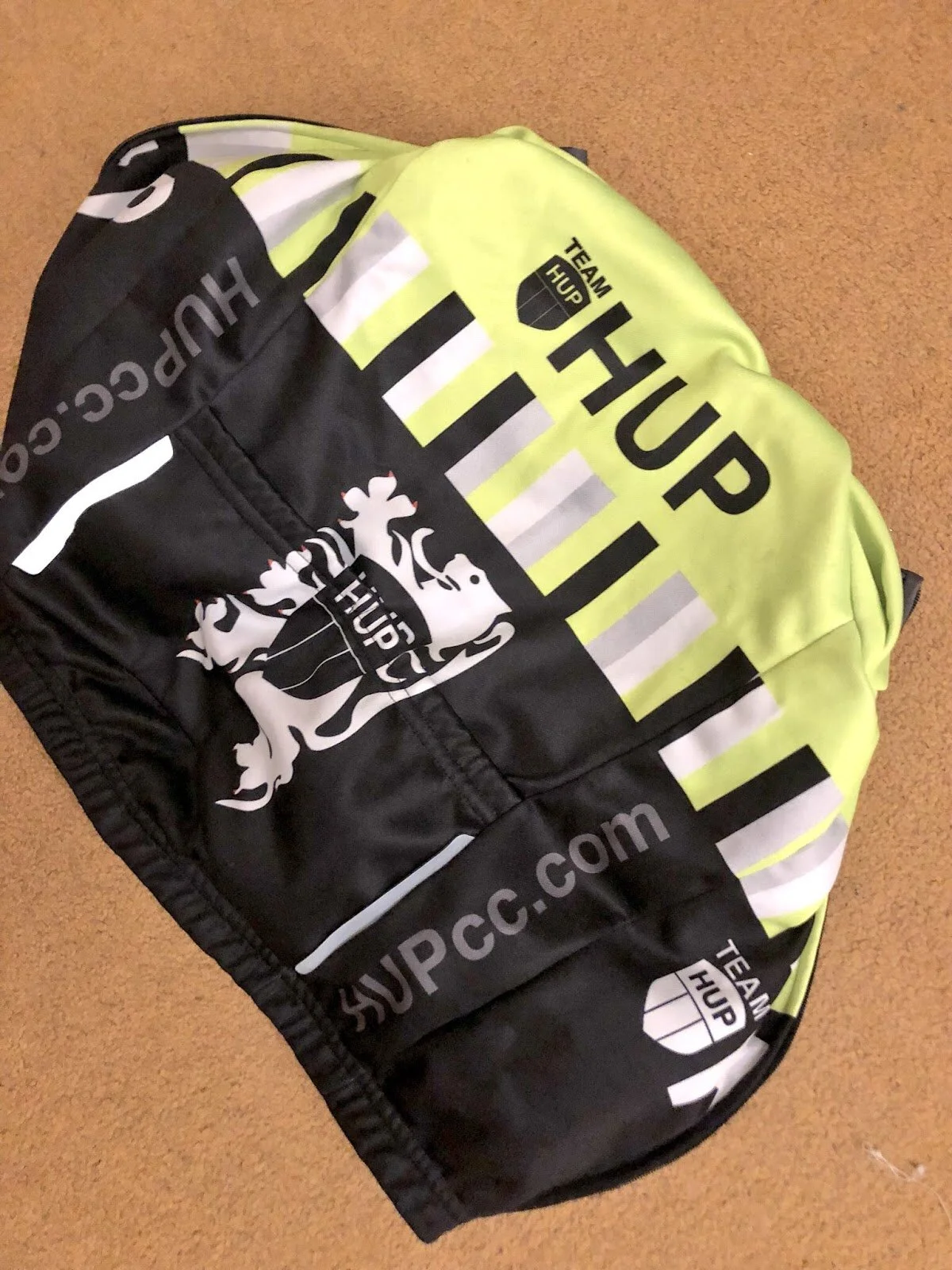 We got home, got warm, got the girls some hot chocolate and a bath, and Katie set to, continuing the hunt for the lost jersey, finding a number of other things we didn't know we'd lost, along the way, and filling two bags for the charity shop, largely of toys that the girls didn't need any more. At the bottom of one of the toy boxes, patiently waiting all along to be discovered, was a Size 1 HUP cycling jacket.