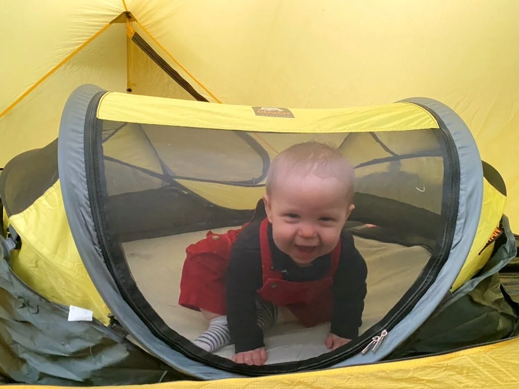 The back garden of an urban residence, especially your own, where you have neighbours to stay friends with for the longer-term, is a high-stakes place to take your baby camping for the first time they will remember. In fact, my distinct preference for such a trip is to be as far from the sight and sound of others as possible - in the wilds of Scotland worked nicely for the girls, and in Thomas Ivor’s case, it was a soggy field in mid-Wales. Campsites are less conducive to the objective, because on the one hand you want noisy neighbours so you’re not the people everyone’s glaring at in the morning, yet on the other, you want the little one to actually sleep.